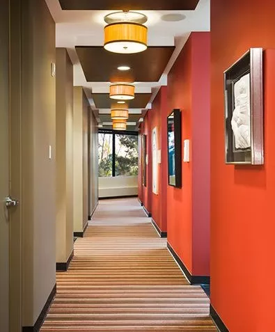 Don’t think that when it comes to office wall ideas, the interior walls are the greatest area to put art. Add a splash of color to the hall and balcony barriers as well. Wall designs for office.